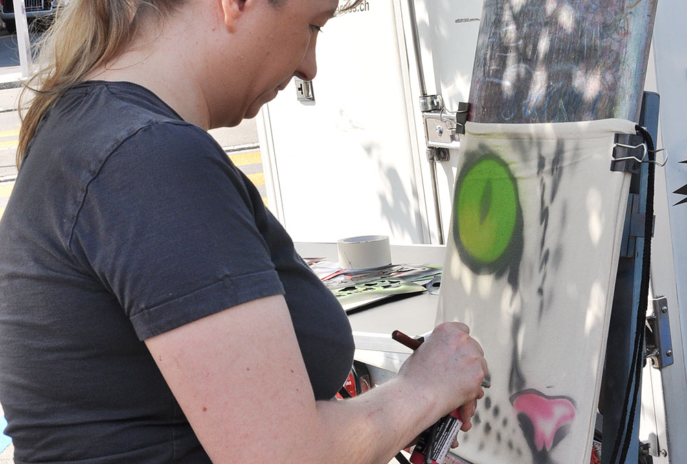 Und so strömen am 28. Mai die Menschen in Scharen auf den Rössliplatz, um mit der Sparcassa ihr 200-Jahr-Jubiläum zu feiern. Die Besucherinnen und Besucher lassen sich Pizza aus dem Holzofen schmecken und stossen mit Wein, Bier oder Soft-Getränken an. Wem es zu heiss wird, kühlt sich mit einem Hofladen-Glacé ab. Kinder – aber auch Frauen – lassen sich filigrane Muster auf die Gesichter schminken. Wer die Farbe lieber auf der Tasche als im Gesicht hat, lässt sich sein Lieblingssujet auf eine Sparcassa-Tasche sprayen. Der Hit – und zwar nicht nur bei den Kleinen – sind die Clowns Pepe und Tommy. Sie zeigen Zaubertricks mit Karten, Seilen oder Ringen, unterhalten mit Spässen und lassen die Kinder zu Artisten werden. Die Mutigen klettern auf die Schultern der Clowns, erklimmen die Leiter und stellen sich ohne eine Miene zu verziehen auf das Nagelbrett oder in einen Haufen Scherben. Ohne Tricks kommt hingegen Philippe Chrétien aus: der Saxophonist sorgt mit seiner Musik für eine stimmungsvolle Atmosphäre!